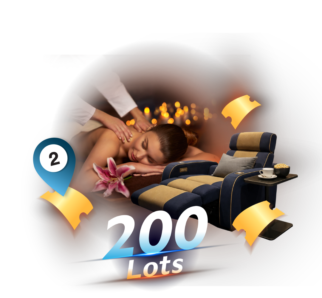 - 200 Lots: เลือกรับแพ็กเกจคอร์ส Massage & Spa หรือ ตั๋วดูหนัง Premium Bed Cinema (กดปุ่ม "Claim Reward" ในระบบเพื่อเลือกรางวัล ของรางวัลมีจำนวนจำกัด)