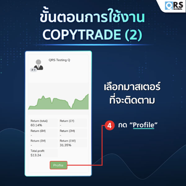 - แสดงข้อมูลที่โปร่งใส - ตรวจสอบข้อมูลเชิงลึกของ Master ได้อย่างครบถ้วน เช่น ผลตอบแทน, ประวัติการซื้อขาย และข้อมูลความเสี่ยง