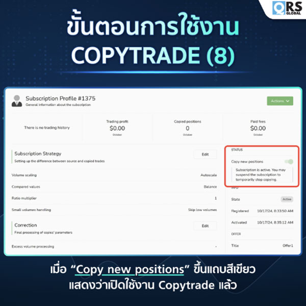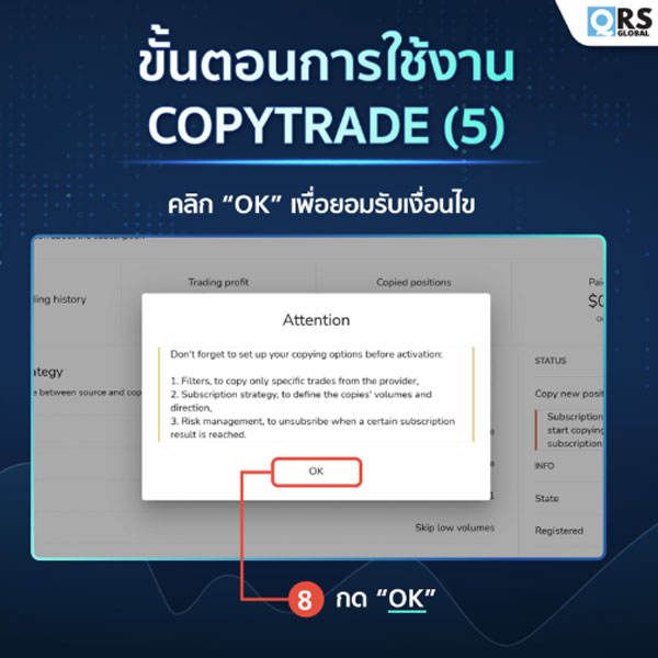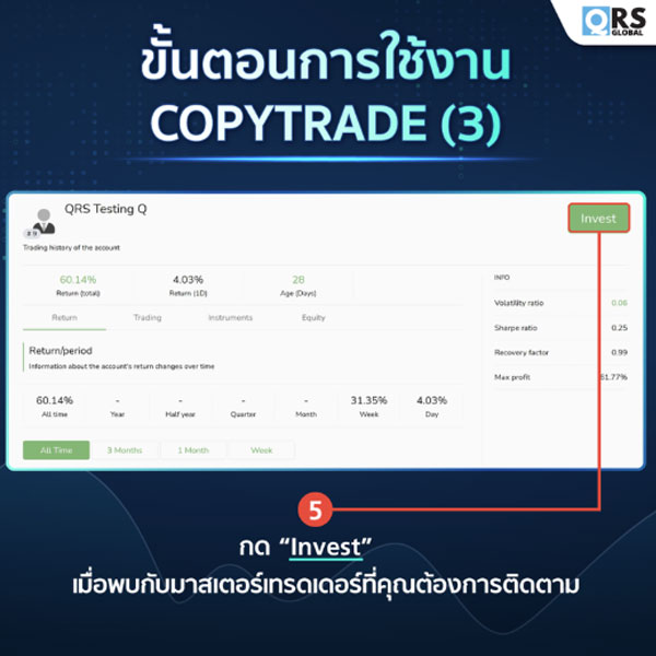 - ควบคุมความเสี่ยงด้วยตนเอง - กำหนดสัดส่วนการคัดลอกให้เหมาะสมกับเงินทุน เพื่อบริหารความเสี่ยงได้อย่างมีประสิทธิภาพ