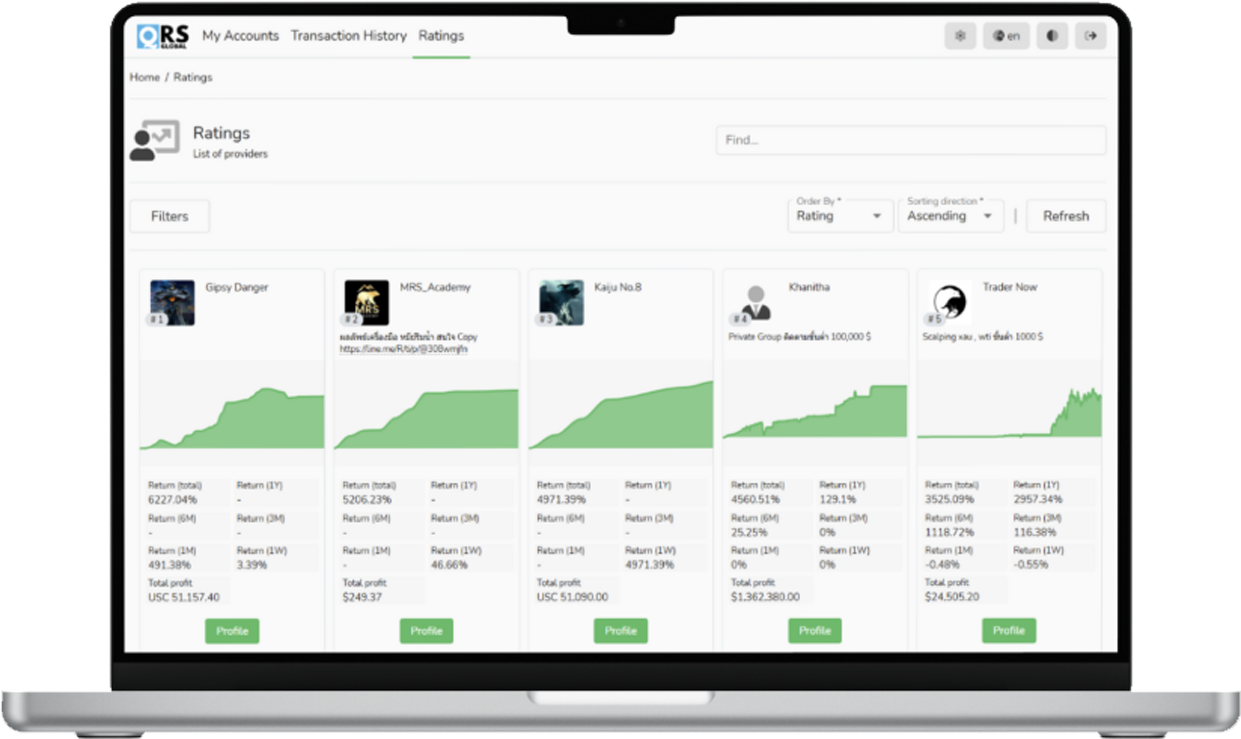 - มีโอกาสสร้างรายได้ตั้งแต่เดือนแรก - ด้วยการเลือกมาสเตอร์ที่มีผลงานดี ลูกค้าใหม่สามารถเริ่มทำกำไรได้ทันทีโดยไม่ต้องรอฝึกเทรดหลายเดือน