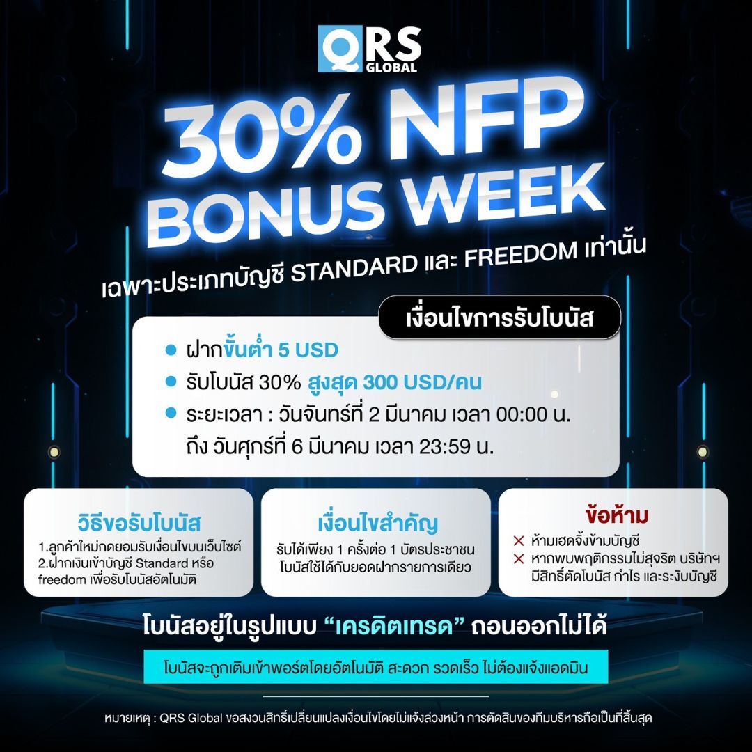 เงื่อนไขการรับโบนัสโปรโมชั่น "30% NFP Bonus Week"